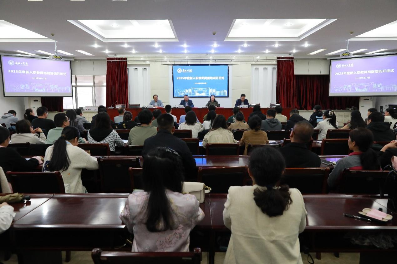9月24日下午,学校在行政楼四楼会议室举行2025年度新教师岗前培训开班仪式。学校宣传部、学生处、精品产品综合产品综合(教师发展中心)、人事处、科研处、教学研究与评估办公室部门负责人,各教学院部院长(主任)、教学副院长(副主任),新进教师及其指导教师等参加。副校长赵卫兵主持开班仪式。